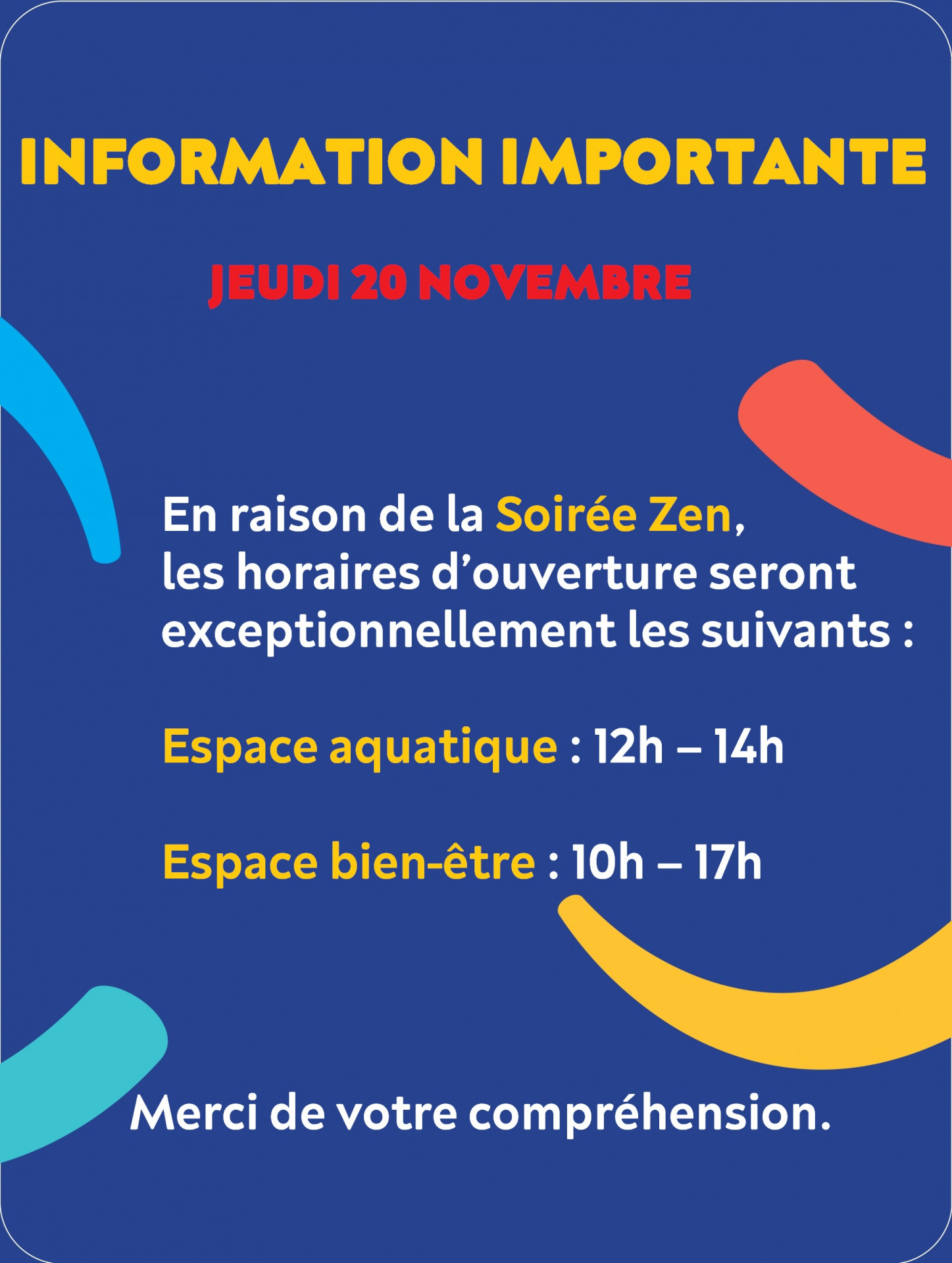 Info : Horaires JEUDI 20 NOVEMBRE 2025